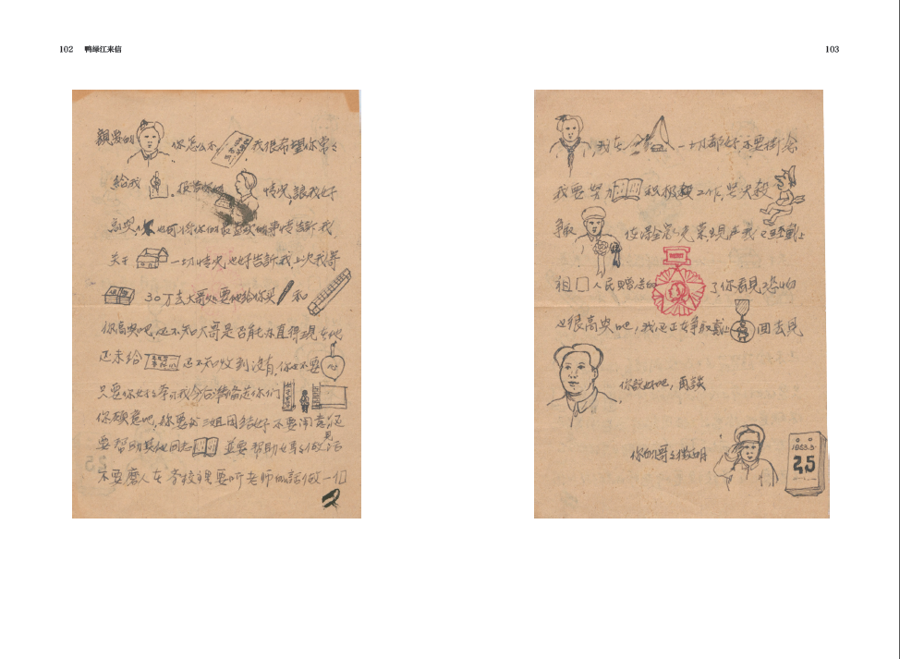 其次是特点鲜明。志愿军战士李征明写给妹妹的信件图文并茂,充满童趣。由于几个妹妹还在读小学,这位年轻的哥哥在信中既嘱咐她们“要帮妈妈干活”“在学校要听老师的话”,又寄钱让她们买钢笔、口琴、书和裙子,字里行间满是兄长对妹妹的疼爱。而在战场上,他誓言“坚决杀美国鬼子,争取戴上大红花”,展现出战士的英勇无畏。