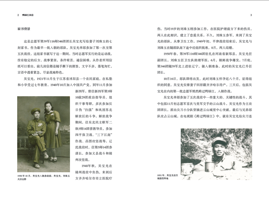 首先着重选择“从未面世”的家书。书中逾半数信件为首次公开,志愿军第39军116师346团团长吴宝光的7封家书便是代表。吴宝光去世20余年后,儿子吴翔才首次读到这些信。2023年,其94岁的爱人刘珠玉从报纸得知征集消息,嘱咐儿子将保存70多年的家书无偿捐赠。